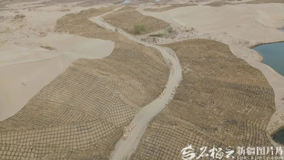 中铁二十三局参建的塔克拉玛干沙漠锁边工程草方格生态屏障(资料图片)。王志文摄
