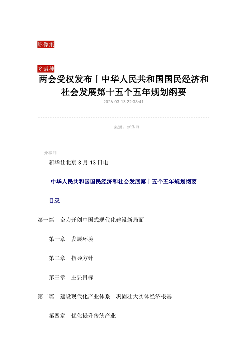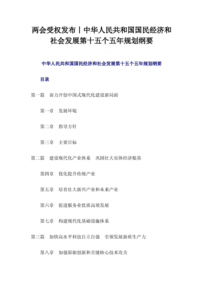 两会受权发布丨中华人民共和国国民经济和社会发展第十五个五年规划纲要